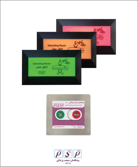 کنترلر و چراغ سردرب اتاق عمل ، نمایانگر وضعیت اتاق از نظر وجود بیمار و تیم جراح ( چراغ قرمز چشمک زن ) ، درحال استریل ( چراغ زرد ) و یا آماده استفاده ( چراغ سبز ) می باشد که می توان وضعیت آن را به صورت دستی توسط کنترلر تغییر داد.